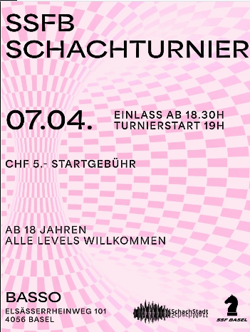 Am 7.4 steigt unser Schachturnier im Basso egal ob Anfänger oder Großmeister, alle Niveaus sind willkommen.
