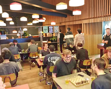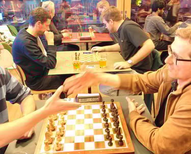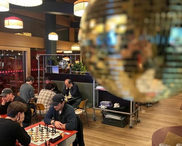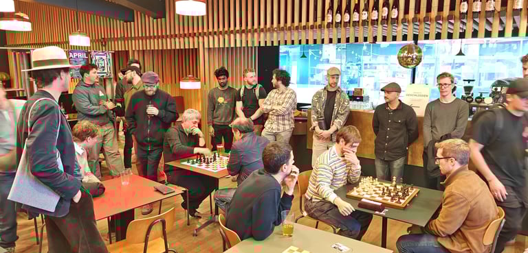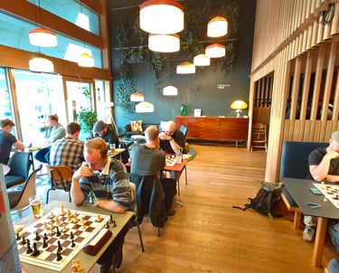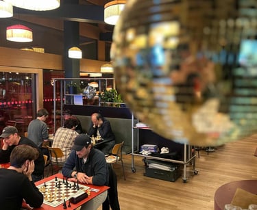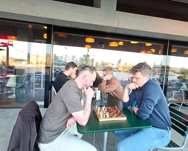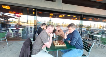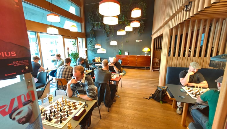 Ein paar Schachspieler trauten sich sogar schon draussen auf der Basso-Terrasse zu spielen. Der Nachteinbruch trieb sie dann wieder in die Innenräume des Basso.