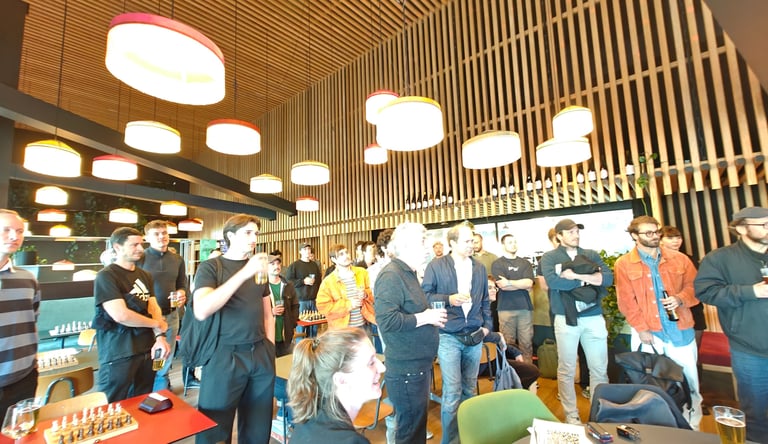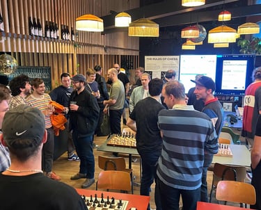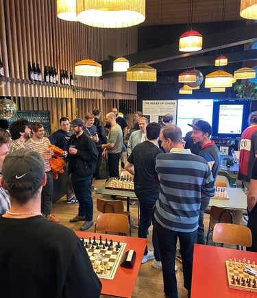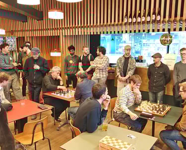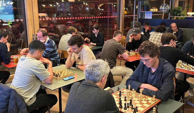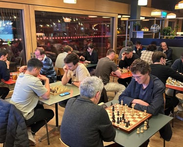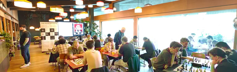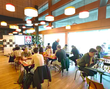 36 Spielende. Ein paar Schachspieler trauten sich sogar schon draussen auf der Basso-Terrasse zu spielen. Der Nachteinbruch trieb sie dann wieder in die Innenräume des Basso.