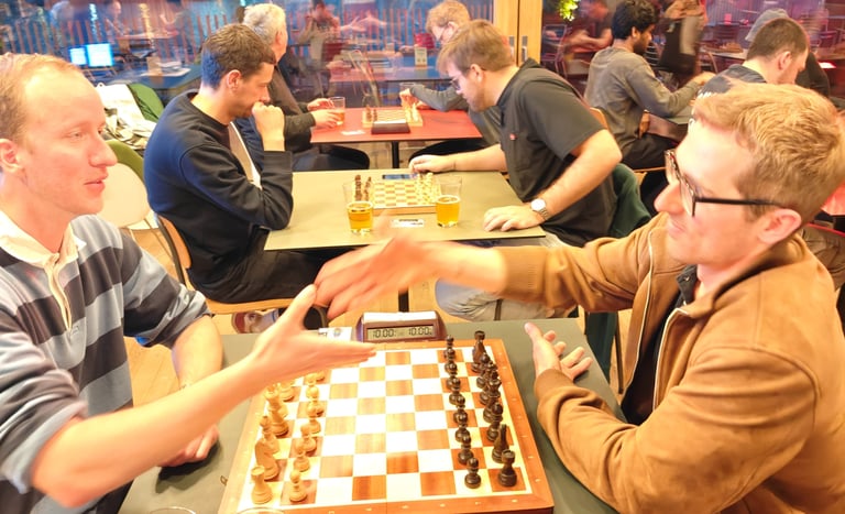 Nach vier Runden hatten noch drei Spieler eine reine Weste und spielten zusammen mit dem bestplatzierten Spieler mit drei Punkten (Christian) jeweils eine Halbfinal- und eine Finalpartie. Gerome gewann gegen Leo und Christian gegen Mosko und so bekam Christian seine Revanche gegen Gerome. Gerome hatte in der zweiten Runde mit Schwarz den über 2000 Elo starken Christian bezwingen können zog aber im Final den kürzeren.